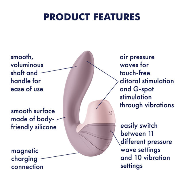 Satisfyer Supernova forkæler klitoris med sensuelle lufttryksbølger, og samtidig tager den sig af G-punktet med kraftige vibrationer.