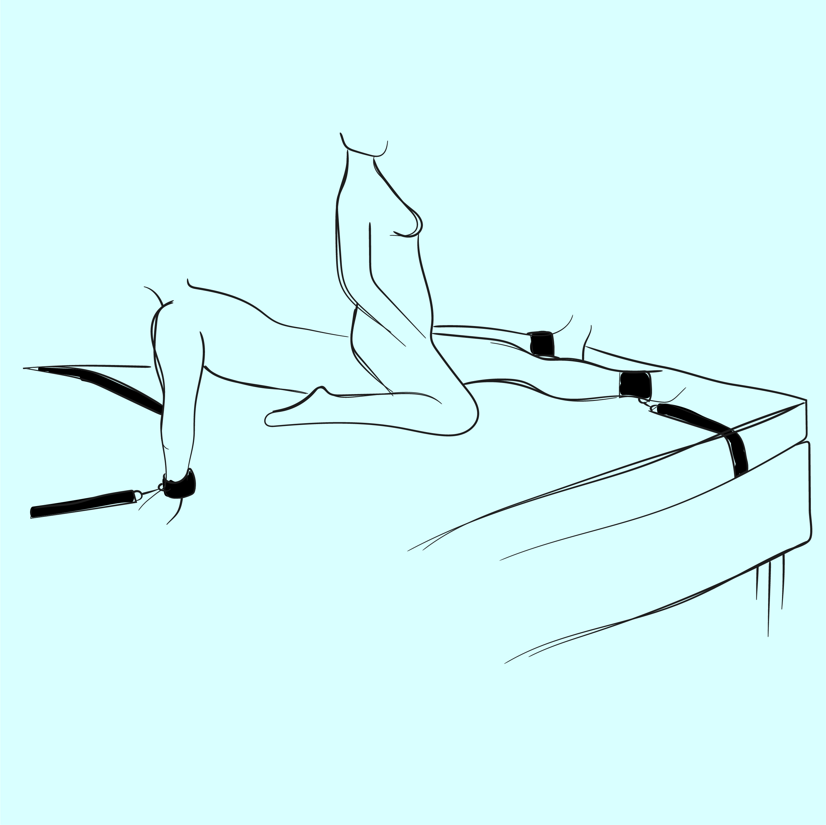 Man kan binde hinanden på forskelige måder. Test forskellige stillinger for at finde den hårfine balance mellem nydelse og smerte. OBS! Husk et safe word er vigtigt at have i BDSM-sammenhæng.