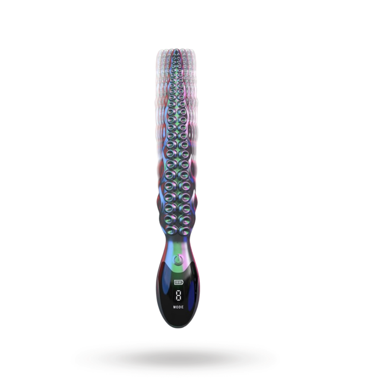 Overfladen er helt dækket med afrundede “monster”-skæl, som giver konstant stimulering og en fyldigere fornemmelse for partneren. Den åbne spids lader glansen mærke direkte kontakt, mens resten af penis nyder godt af den teksturerede sleeve.
