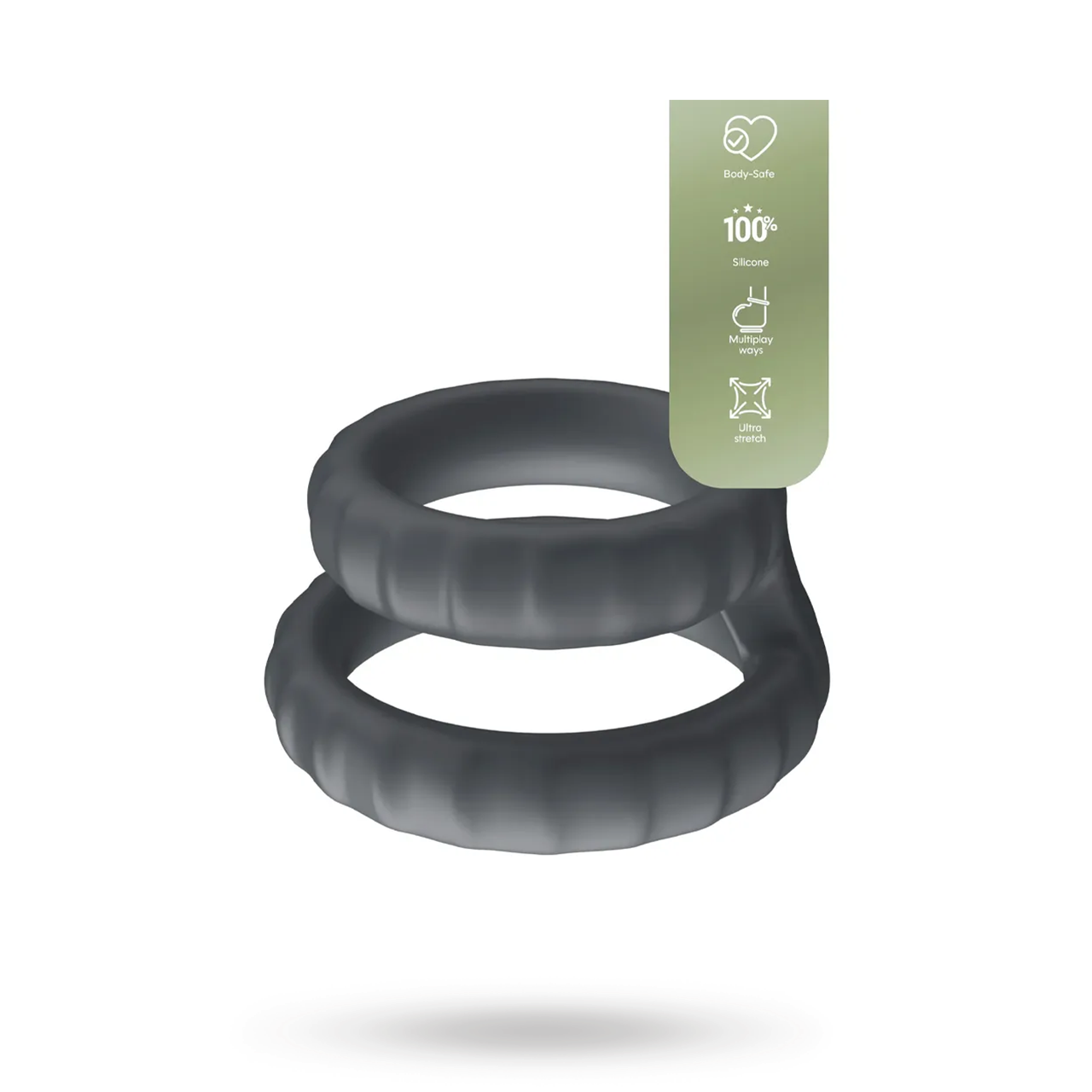 3-pak – Tre ringe betyder masser af kombinationsmuligheder. Brug én ad gangen omkring penis, pungen eller som ball stretcher. Stable flere for en skræddersyet pasform og intensitet.